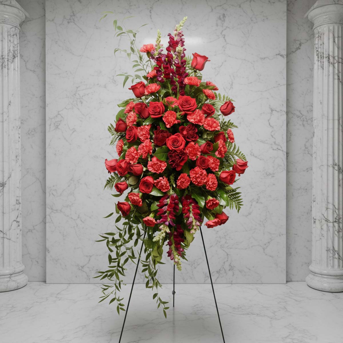 Honour Their Memory with a Striking Red Funeral Standing Spray