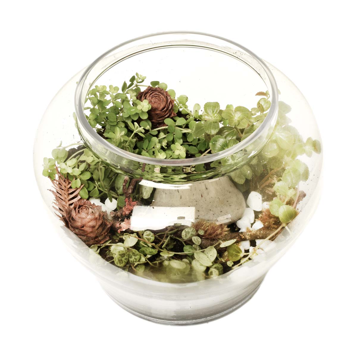 我們的聖米格爾花園玻璃容器植物園,能為您的空間增添一抹靜謐而引人注目的視覺焦點。這款玻璃容器植物園高達13 英寸,設計超越了傳統的擺設,堪稱一件真正的植物藝術品,其寬敞的玻璃容器內展現了一個鬱鬱蔥蔥、自給自足的微型生態系統