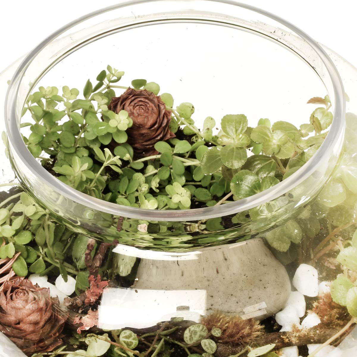 • 維護成本極低:由於玻璃容器的封閉生態系統,因此它是非常容易照顧的禮物,幾乎不需要任何干預就能茁壯成長。